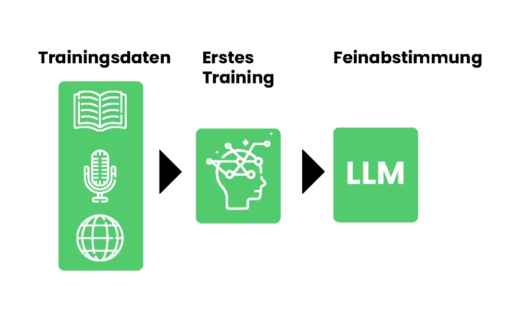 Das Training eines Large Language Models verläuft in mehreren Stufen, die jeweils unterschiedliche Schwerpunkte haben. Jede Phase trägt dazu bei, dass das Modell Sprache inhaltlich erfassen und neue Texte generieren kann.